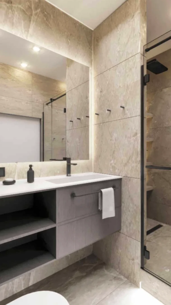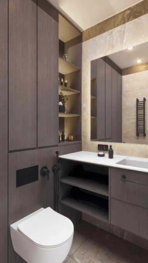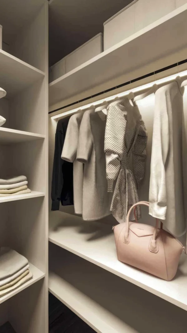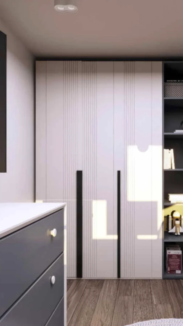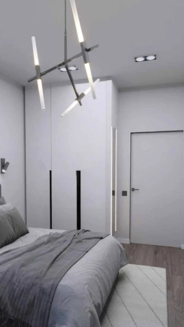Дизайн проекта квартиры в площадью 49,9 м² создан в светлых пастельных тонах, придающих простору легкости и уюта. Квартира имеет функциональную планировку: просторная кухня-гостиная для совместного отдыха, уютная спальня, гардеробная комната для удобного хранения вещей, современный санузел и стильная прихожая. Светлые оттенки в интерьере подчеркивают простор, а продуманное зонирование делает квартиру идеальной для комфортной жизни.
