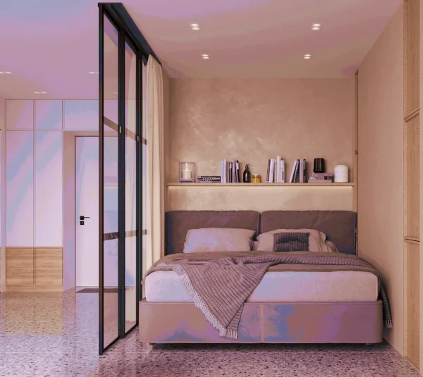 Для большего пространства использовали обеднённую планировку, она позволила организовать максимально комфортное место для жизни и пребывания.