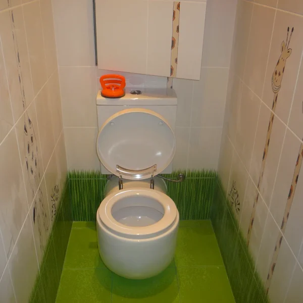 Ванная: Пространство для релаксации. Гладкие поверхности и минималистичный дизайн способствуют созданию спокойной атмосферы, подходящей для водных процедур.